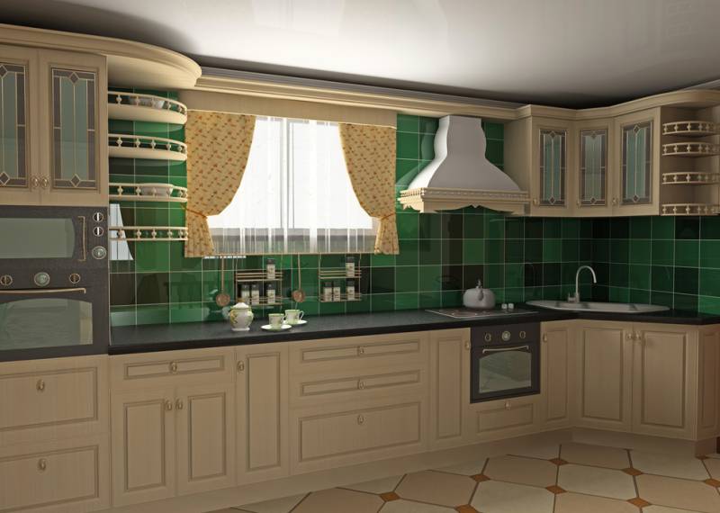 Bucataria din aceasta imagine ofera caldura si liniste. Culorile din natura, precum lemnul natur al mobilierului si nuanta de verde a faiantei contribuie la realizarea unei oaze de recreere. Intr-un astfel de decor, timpul rezervat gatitului devine mult mai placut.