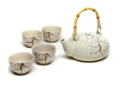 Set de ceai pentru patru persoane, compus din: ceainic de 550 ml, cu maner din bambus si 4 cesti de 100 ml fiecare.