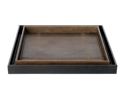 Set de 2 tăvi, piele, 40x40H3,5cm / 35x35 H 3,5 cm - 549 lei