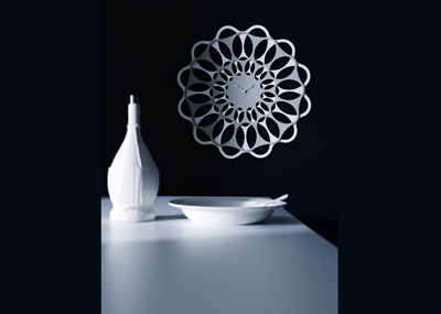 Ceas & - ceas de perete din metal lacuit, alb, negru, oranj, antracit, alb/gri, lila/violet. Design: Juan Carlos Viso. Pret: 77 EUR, fara TVA
