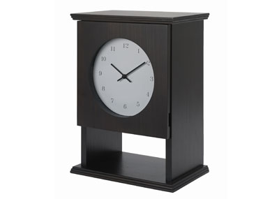 FLUKTA ceas de birou/perete, 27x37 cm, lemn masiv de pin, negru-maro. Ceas cu spatiu de depozitare pentru obiecte mici; 1 polita fixa inclusa. Perforatiile permit suspendarea pe perete. Pret: 129 lei