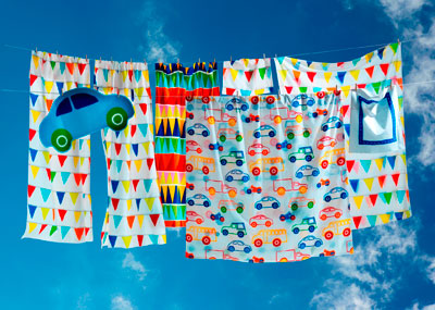 VITAMINER VIMPEL - set perdele cu cordon, 100% bumbac. Designer: Sirpa Cowell, 120×250cm, multicolor. Pret: 85 lei