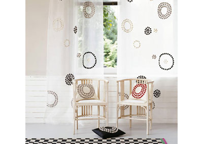 Perdea alba cu cercuri negre si crem,matase, 105x285 cm. Pret: 241,40 lei