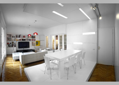 In cele ce urmeaza, va prezentam un proiect semnat Parasite Studio, proiect ce a fost nominalizat la Bienala de Arhitectura din anul 2008. Designul a fost conceput ca si o interventie, in care albul este dominant si joaca rolul unui mediu curat si imaculat, unde tema principala a apartamentului consta in dezvoltarea mobilierului tratat ca si o insertie contemporara unitara. Designul surprinde prin latura sa functionala si, in acelasi timp, estetica, fiind un exemplu de amenajare contemporana nonconformista si spectaculoasa.