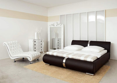 Pat Lynes - 180x200 cm, tapiterie din piele sintetica maro, picioarele si baza sunt cromate, somiera si salteaua nu sunt incluse in pret - Pret: 3290 lei