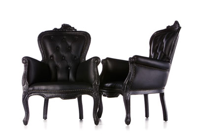 Smoke Chair - scaun din lemn ars controlat vopsit epoxy, avand tapiteria din piele. Dimensiuni: 105x72x72 cm( h x L x d). Design: Maarten Baas,2002. Pret: 2240 EUR, fara TVA
