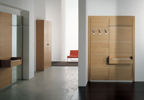 Colectia Matrix ofera o multitudine de variante pentru crearea unor compozitii unice pentru holuri. Compozitia prezentata este realizata din lemn furniruit cu finisaje natur si cuprinde: suporturi pentru haine, bara umerase, raft suspendat. Produs in Italia