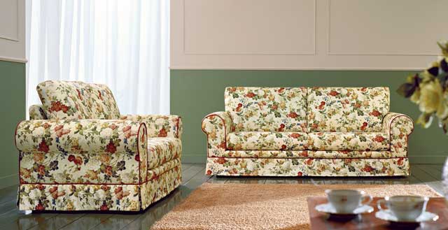 Canapea Happy - Imprimeurile florale inspirate din stilul traditionalist britanic cuceresc firile romantice dornice de seri relaxante in compania prietenilor si a familiei. Structura din panouri din lemn, perne sezut realizate din poliuretan de inalta densitate, cotiere si perne spatar confectionate din poliuretan.