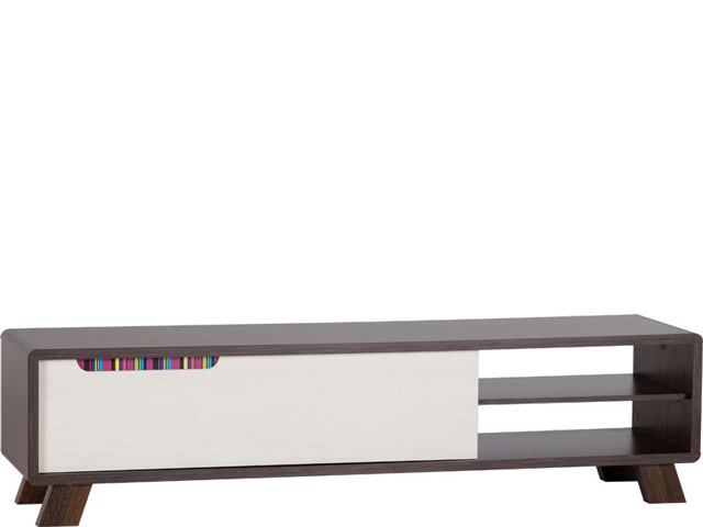 Comoda tv New Folk - comoda TV, L186xA46xH48 cm. Deschiderea se face prin apasare. PAL melaminat+MDF, culoare mesteacan+nuc. Pret: 825 lei