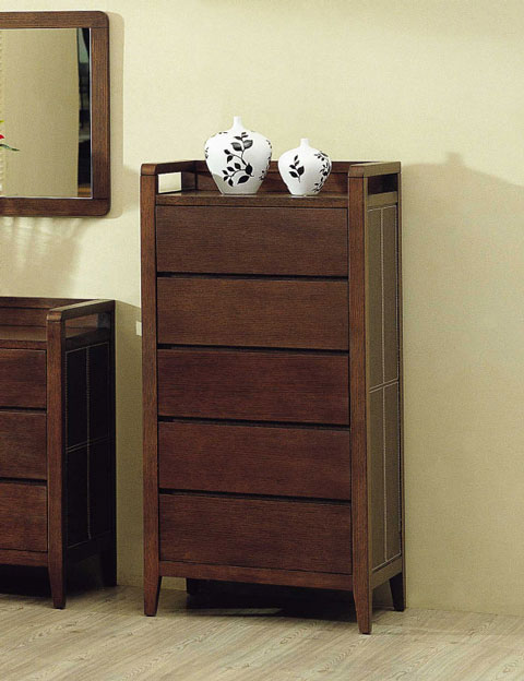 Comoda Pronto - comoda inalta cu 5 sertare, L60XA43,5XH125 cm, MDF furniruit, culoare ciocolata. Pret: 719 lei