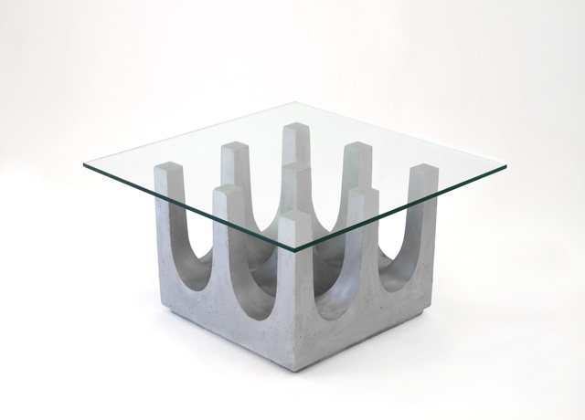 Beton - fabricat din beton, masa exploateaza acest material care este cunoscut pentru utilizarea sa in domeniul constructiilor. Orasul Berlin a cunoscut o transformare dramatica de la caderea zidului in urma cu aproape 20 de ani, fiind un oras in care creativitatea si experimentarea merg mana in mana. Beton preia cresterea si dezvoltarea orasului in timp ca influenta sa principala.