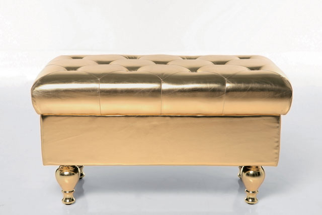Scaun SHINING GOLD - Taburet auriu, mdf si piele artificiala, dimensiuni 0,46x0,84x0,43 m. Pret: 856 lei