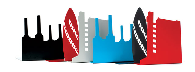 Suport de carti London Landmark - Sarbatorind cladirile iconice si alternative ale arhitecturii londoneze, Susan Bradley reuseste sa surprinda aceste repere in suporturile de carti functionale din imagine. Aceasta a ales trei dintre cladirile sale preferate: Trellick Tower, The Gherkin si Battersea Power Station, design-ul rezultat fiind unul vesel, urban si original. Dimensiuni: 17x14x12 cm.