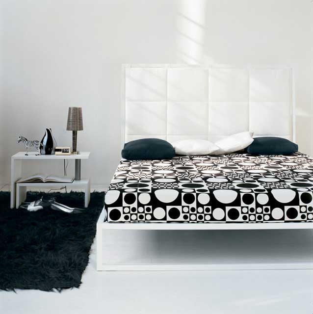 Mini - Design Emaf Progetti - Pat demontabil cu structura din otel lacuit alb si spatar tapitat cu poliuretan/Dacron, husa interna din nylon si husa externa detasabila din material textil sau piele. Somiera inclusa din stinghii de fag curbate cu elemente de ajustare pentru flexibilitate. Pret: de la 3166 euro fara TVA (pt. saltea 180x200 cm) in functie de material, pretul include somiera, dar nu si salteaua.