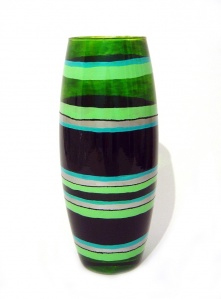 Vaza din sticla in dungi - inaltime: 26 cm. Pret: 79 lei.