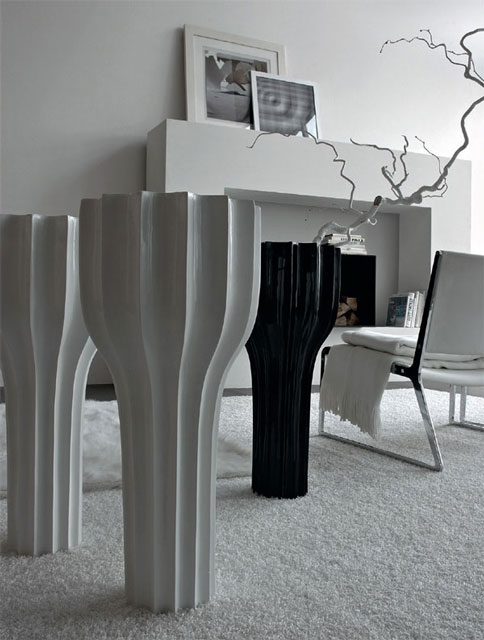 Vas Big Line - ceramica de mari dimensiuni, colorata in alb sau negru, cu vopsea lucioasa. Inaltime 92 cm. Vas de interior marca Adriani&Rossi, disponibil prin Morphoza-atelier de interioare.