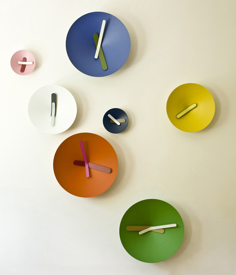 Mozia - Design: Giovanni Levanti - ceas din folie subtire de aluminiu, in culori mediteraneene, disponibil pe mai multe dimensiuni. Pret: 78 euro fara TVA, 130 euro fara TVA, 180 euro fara TVA