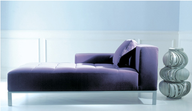 ALFA - Design: Emaf Progetti, 1999. Canapea modulara cu rama si picioare din otel, cromate, nichelate sau din grafit, cu insertii din spuma poliuretanica si husa interna fixa din nylon si husa externa detasabila din material textil sau piele, pe mai multe culori. Pret pornind de la: 3,116 euro fara TVA