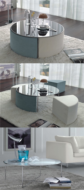 Masuta Virgilio - masuta de cafea, cu top de sticla (alba sau neagra), picioare subtiri, metalice si 4 pernute Puf. Masa poate aparea ca un sistem compact, cu Pufurile introduse sub blat, sau ca o masuta, insotita de 4 Pufuri bicolore. Produsul poarta emblema Doimo Salotti si este disponibil prin intermediul Morphoza-atelier de interioare.