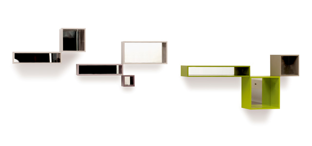 Mirror Mirror - Desgin: Pearson Lloyd. Polite de perete realizate din mdf furniruit sau lacuit mat/lucios. Pot fi asezate pe orizontala sau verticala, iar peretele din spate este din oglinda. Dimensiuni: 300 x 150 x 600 mm. Pret: 429 euro fara TVA