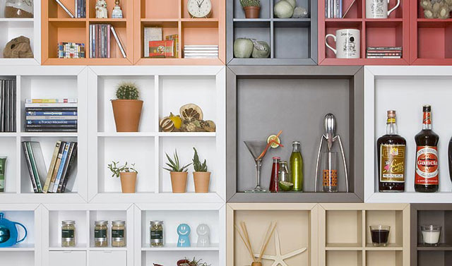 Kadr - Mobilier modular format din cuburi de sine statatoare; dotate cu un sistem special pentru stocarea Cd-urilor si DVD-urilor sau pentru depozitarea diferitelor obiecte. Dimensiuni: In functie de proiect. Produs in Italia. Pret: la cerere