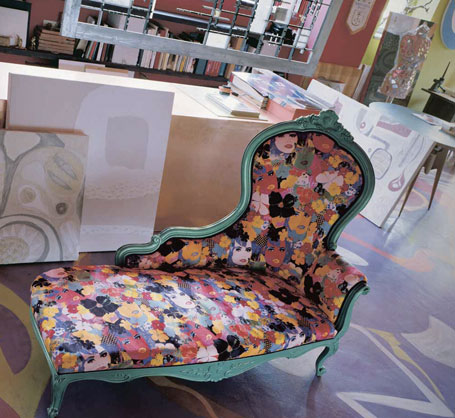 Sezlong Moda - disponibil prin intermediul Morphoza-atelier de interioare. Produsul combina stilul clasic-glam cu stilul creativ - avangardist in combinatii de culori tari.