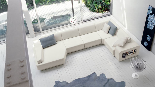 Canard este o colectie de piese modulare ce ofera posibilitatea crearii unei multitudini de modele de canapele. Bazata pe minimalism, eleganta si rafinament, colectia Canard ofera piese de mobilier cu baza din lemn masiv de brad, structura poliuretanica si 5 tipuri de tapiserii din piele. Dimensiuni: 405 / 235 x 105 x 80 cm. Produs in Italia. Pret: de la 6,550 euro + TVA – compozitie imagine – in functie de tipul de piele