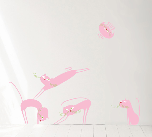 Autocolant decorativ CATENKITT PINK Domestic - 5 pisici neastamparate sunt gata pentru decupat, combinat, aranjat dupa gustul dumneavoastra. Usor de pozitionat, create din vinil lavabil rezistent, autocolantele va invita sa jonglati cu ele. Se pot decupa si lipi figurinele preferate din ele sau se pot folosi intregi. Daca nu va mai place unde le-ati asezat, le puteti dezlipi. Dimensiuni: 150 x 100 cm. Pret: 197,51 lei