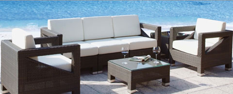 Theorema Lounge - set de mobilier pentru terasa sau gradina, compus din: o canapea de doua locuri, 2 fotolii si masuta cu top de sticla. Mobilierul este realizat din materiale care ii confera un aspect impecabil pentru mai multe sezoane consecutive: polietilena inlocuieste ratanul, 3 tipuri de culori disponibile - alb, negru si maro inchis, picioare de aluminiu pentru rezistenta la uzura, pernute dehusabile - albe, negre sau rosii. Mobilier produs in Italia, disponibil prin intermediul Morphoza-atelier de interioare.