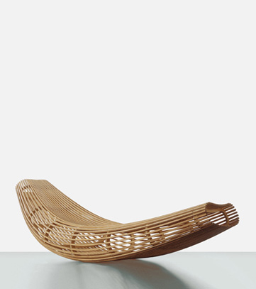 Body Raft - Design: David Trubridge, 2002. Sezlong realizat din fasii de lemn masiv de fag si inele din fag stratificat. Pret: 6,852 euro fara TVA.Intro