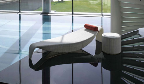 Dialogo - sezlong de polietilena alba sau neagra, cu pernuta reglabila si side table. Un design spectaculos pentru un bronz perfect. Produs disponibil prin intermediul Morphoza-atelier de interioare.