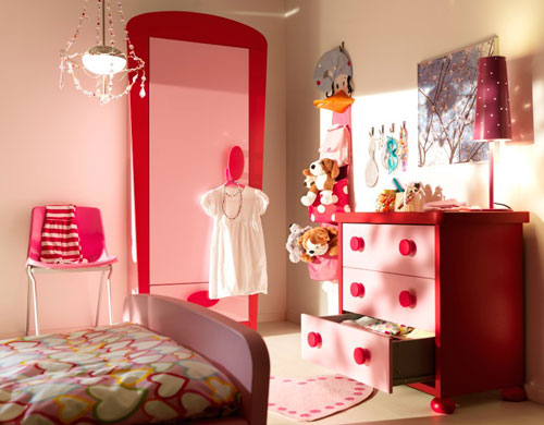 MAMMUT - dulap de haine 84x186 cm, PAL melaminat, roz / rosu. Pret: 625 lei.MAMMUT - comoda cu 3 sertare, 77x73 cm, PAL melaminat, roz / rosu. Pret: 499 lei.