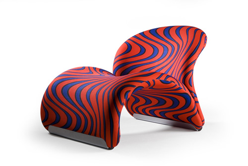 Le chat - Design: Pierre Paulin. Fotoliu cu structura din lemn curbat, spuma poliuretanica si benzi elastice, baza din profil de aluminiu si husa detasabila din material textil. Pret: 1.398 euro fara TVADisponibil prin Intro