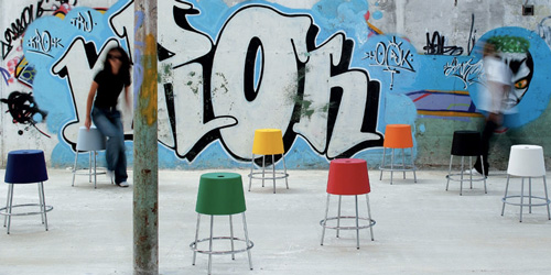 Marrakech - taburet Casamania, prin Morphoza-atelier de interioare. Usor si practic, taburetul Marrakech este usor de depozitat prin suprapunere. Picioarele metalice si topul din polietilena multicolora transforma obiectul intr-o piesa vesela si utila de mobilier.
