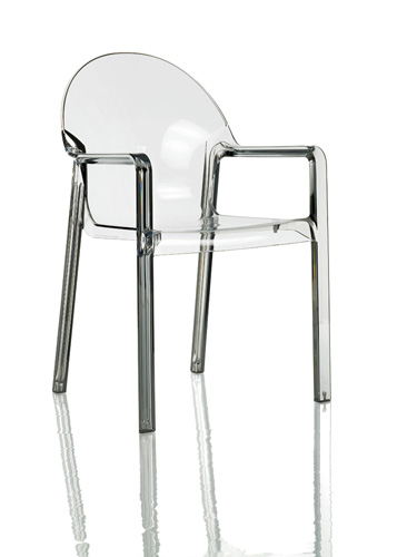 Tosca Clear - Design: Richard Sapper. Gama de scaune stivuibile cu structura din poliamida lucioasa sau policarbonat transparent. Potrivite pentru utilizarea in exterior.Pret: 193 euro fara TVA.