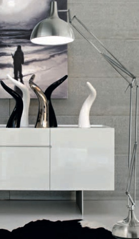 Corno - obiect decorativ sub forma de corn, cu finisaj alb, negru sau argintiu by Adriani&Rossi. Dimensiuni 40X10 cm, respectiv 50X15 cm. Produs Morphoza-atelier de interioare.