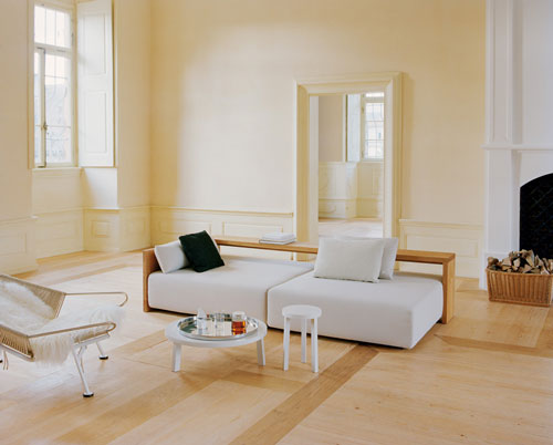 SF02 KASHAN - Design: Philipp Mainzer, 2006. Canapea cu rama din stejar si sezut imbracat in material textil sau piele. Pret pornind de la: 3,812 euro fara TVA.E15 prin Intro
