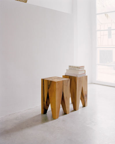 ST04 Backenzahn - Design: Philipp Mainzer, 1996. Gama de scaune si masa realizate din lemn masiv de stejar sau nuc. Pret: 612 euro fara TVA (stejar), 894 euro fara TVA (nuc).E15 prin Intro
