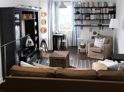 nou: HEMNES - ansamblu depozitare TV. Sistem de colectare a cablurilor; ascuns vederii, dar la indemana. Lemn masiv de pin. Lat209×A37/47, H197cm. Negru-maro. Pret: 2596 lei.