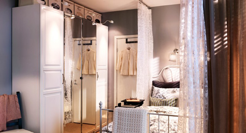 PAX BIRKELAND/AURLAND - dulap de haine cu 4 usi. Accesoriile de interior se vand separat. Distanta minima necesara fata de plafon: 240 cm. MDF si usa de sticla. Designer: K Hagberg/ M Hagberg. Lat200×A60, H236cm. Alb . Pret: 1.828 lei.LEIRVIK - cadru pat. Otel, pudra de poliester. Designer: Carina Bengs. Pretul include bara de sustinere SKORVA. Lat168×L209, H146cm. Dimensiunea saltelei Lat160×L200cm. Salteaua si suportii pentru saltea se vand separat. Alb. Pret: 419 lei.