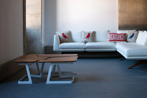 Fracture Coffee Table - Design: Mathew Hilton. Masa realizata din nuc american negru sau stejar alb finisat cu ulei danez cu baza din otel vopsit. Masa este compusa din trei piese separate, fiecare avand forme geometrice diferite. Pret: 1,825 euro fara TVA (stejar), 2,015 euro fara TVA (nuc).De la Espada prin Intro