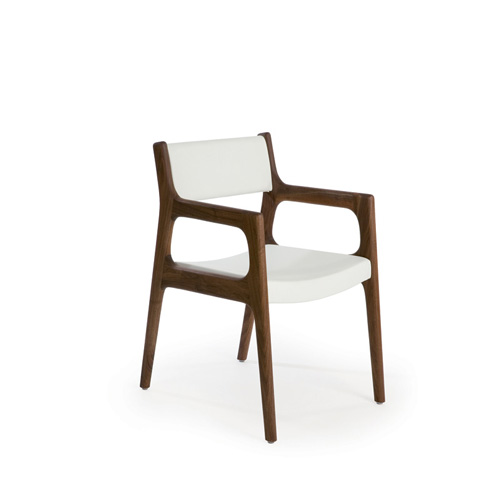Deer - Design: Autoban. Scaun cu structura din lemn masiv de nuc negru american sau stejar alb american lacuit cu ulei danez sau alb, respectiv din HDF lacuit negru. Sezut si spatar imbracate in husa din material textil. Pret: 589 euro fara TVA.De la Espada prin Intro