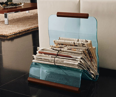 VELA - sticla curbata si manere din lemn Doimo Idea, o reteta inedita pentru un suport de reviste. Dimensiuni 46X40X30 cm. By Morphoza-atelier de interioare
