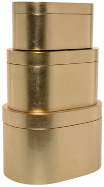 Box Shine Oval Gold (3/Set) - Cutii aurii. Dimensiuni: mare: 21x32x22 cm, mediu: 18x29x19 cm, mica: 14x26x15cm. Pret: 308 lei.KARE