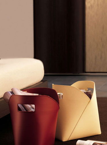 Open - Adriani&Rossi design, produsul din piele ecologica are numeroase intrebuintari - de la functia de suport de ziare si reviste, cos pentru lemne, pentru semineu la cos de depozitare a esarfelor sau a altor accesorii in dressing. Disponibil pe maro inchis, rosu si crem; dimensiuni 50x60x35 cm. By Morphoza-atelier de interioare