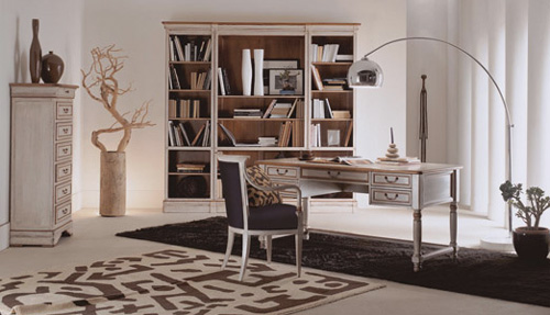 Louise Phillipe - un birou clasic, romantic, cald. Mobilier in linii clasice, cu finisaj alb, antichizat, Selva design. Produs by Morphoza-atelier de interioare