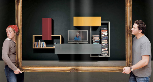 Living 36e8 - compozitie de living din MDF lacuit lucios, Lago design, mobilier minimalist ce mizeaza pe combinatii estetice si functionale de corpuri inchise si rafturi, intr-o paleta speciala de culori. Produs by Morphoza-atelier de interioare