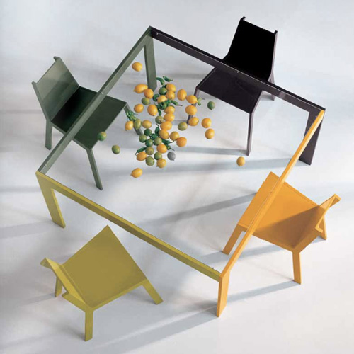 Dining - Minimalist nu inseamna si lipsit de culoare, o demonstreaza setul de dining creatie Lago compus din scaune de diverse culori, design simplist, dar confortabil si masa cu picioare de culori diferite si top de sticla securizata. Produs by Morphoza-atelier de interioare