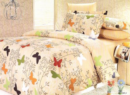 Lenjerie de pat din bumbac satinat - Butterfly - Lenjerie de pat pentru 2 persoane din bumbac satinat, imprimat cu fluturasi. 100 % bumbac. Alcatuita din: cearceaf pilota 200x220 cm. cearceaf pat 220x250 cm, fata perna (2 buc.) 50x70 cm, fata perna (2 buc.) 50x70 +5 cm. Pret: 270 lei.Alyshop