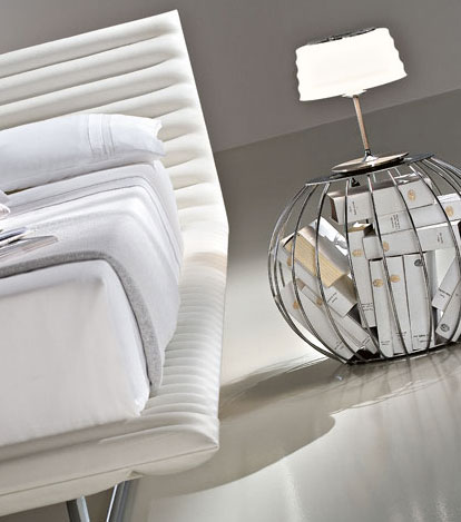 Noptiera glob - produs marca Kreaty, care serveste atat ca obiect de decor, cromat, cat si ca o noptiera. Cu spatiu destinat asezarii de produse - vaze, veioze - si cu spatiu de depozitare la vedere, produsul este disponibil prin Morphoza-atelier de interioare